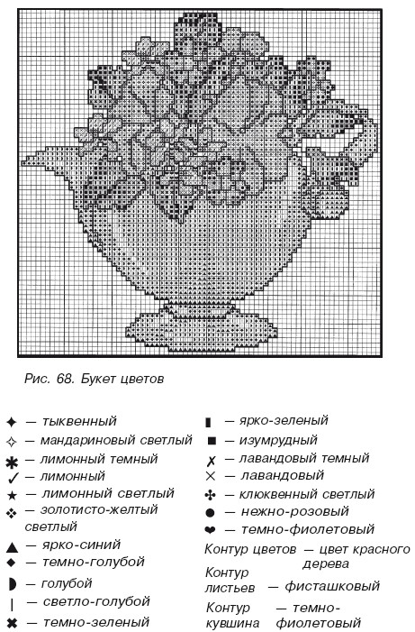 Вышивка крестиком в оформлении современной кухни Казалось бы, вышивка крестиком никак не ассоциируется с современным квартирным дизайном. Действительно, если ваша кухня оформлена в стиле хай-тека или минимализма, такие аксессуары на ней неуместны, а вот по отношению к стилю кантри или поп-дизайна традиционный прямой или косой крестик не будет смотреться как явный анахронизм, а вполне сойдет за оригинальный рисунок. Особенно эффектно вышивка крестиком выглядит на полотенцах, салфетках, прихватках, чехлах для стульев и прочих кухонных аксессуарах, сшитых из фактурной «вафельной» ткани (рис. 65, 66, 67, 68, 69, 70). ![]() Рис. 65. Бананы ![]() Рис. 66. Апельсины ![]() Рис. 67. Чайник ![]() Рис. 68. Букет цветов ![]() Рис. 69. Сердца ![]() ![]() ![]() ![]() ![]() Рис. 70. Бабочки Кухонные аксессуары можно украсить декоративными шнурками, бахромой, помпонами и кистями. Шнурки Для оторачивания краев изделия можно применять как готовые шнурки, так и шнурки, изготовленные собственными руками. При отделке изделия круглым шнурком используйте очень крепкие нитки. Шнурок не нужно чрезмерно натягивать, лучше пускать его посвободнее, поскольку при первой стирке он может дать усадку и стянуть край изделия. Пришивайте шнурок к рубчику через край, не позволяя шнурку извиваться. Следите за тем, чтобы оплетающие шнурок нитки ложились строго по прямой линии. Шнурок, связанный на пальцах При выполнении этого шнурка, состоящего из вплетенных одна в другую и крепко притянутых петель, пальцы выполняют роль крючка. Свяжите два конца нитки, один конец возьмите в левую руку, сделайте петлю, пропуская нитку на правую руку и поднимая указательный палец, и натяните нитку левой рукой. Затем, придерживая пальцами левой руки натянутую нитку, введите указательный палец этой же руки в петлю, накинутую на указательный палец правой руки, захватите нитку, спущенную с левой руки и расположенную позади петли, и вытяните ее по направлению к себе. В тот момент, когда указательный палец левой руки поднимается с новой петлей, спустите петлю с указательного пальца правой руки, переместите конец с узлами из правой руки в левую и захватите его между большим и средним пальцами. Левой рукой затяните узел. Указательным пальцем правой руки захватите нитку и проденьте ее через петлю на левой руке. Конец с узлами переместите в правую руку, а левой затяните узел. Таким образом, шнурок изготавливается способом поочередного затягивания узлов то на левой, то на правой руке. Тамбурный шнурок Этот шнурок вяжется крючком. Сначала провяжите 4 воздушных петли, соедините их в круг, в каждую петлю провяжите по 1 плотной петле, затем вяжите следующие плотные петли, захватывая за задние ниточки каждой петли предыдущего ряда. В отличие от других изделий, связанных крючком, этот шнурок выполняется с внутренней стороны. Плотная петля выполняется так. Проденьте крючок с лицевой стороны на изнаночную под верхнюю петельку предыдущего ряда, захватите им рабочую нитку, протяните ее через петельку предыдущего ряда, после чего накиньте нитку на крючок и протащите ее сразу через обе петельки. Бахрома Бахрому можно изготовить по-разному. Самый простой способ – выдергивание ниток из ткани после предварительного закрепления ее края. Из выдернутых ниток легко сделать бахрому, если соединить их цветными нитками, переплести в узор или дополнить к