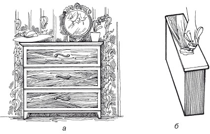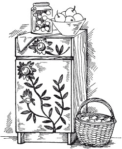 Старой мебели новую жизнь Некоторые вещи обихода с годами приобретают особый шик и не требуют особых преобразований, за исключением едва заметной и бережной реставрации, призванной лишь подчеркнуть их достоинства. Другие предметы мебели неизбежно стареют, утрачивают свою внешнюю привлекательность и попадают в конце концов если не на свалку, то на чердак или в подвал, и о них надолго забывают. Однако старую вещь можно преобразить до такой степени, что она будет смотреться ничуть не хуже, чем новенький, только что привезенный из магазина гарнитур. Оживить старую мебель поможет ваше воображение и совсем немного усилий и старания. Стол-клумба Если вы обнаружили где-то в сарае или на дачном чердаке старый деревянный стол, на котором облупилась краска, а столешница покрылась некрасивыми темными разводами, не торопитесь его выбрасывать. Наверняка он еще достаточно крепок и способен прослужить не один год. Попробуйте заняться реставрацией, тем более что для этого совсем необязательно обладать какими-то специальными навыками. Для начала как следует просушите древесину, аккуратно удалите со всех поверхностей стола остатки краски, тщательно зачистите их наждачной бумагой, после чего покройте матово-белым лаком. Стол уже преобразился, осталось только придать его столешнице декоративный вид, а для этого нанести на нее оригинальный коллаж, выполненный в изысканно-романтическом стиле, и столешница будет выглядеть, например, как клумба с роскошными розами посреди зеленой травы. Итак, за дело. Измерьте столешницу, а также переднюю, заднюю и боковые стенки стола. Открутите ручку выдвижного ящика. Подберите обои с крупным цветочным узором и вырежьте из них прямоугольную накладку на столешницу. Из клетчатых обоев вырежьте подходящие по размеру детали для рамки накладки и стенок стола. Все вырезанные детали тщательно покройте обойным клеем. Чем тоньше обои, тем меньше наносите на них клея. Сначала наклейте на столешницу рамку из клетчатых обоев, затем приклейте внутри ее накладку из обоев с цветочным узором и обведите красным контуром. Линию проводите по линейке специальной тонкой кисточкой, обмакнув ее в красную краску, или лаковым карандашом. Следующим этапом наклейте обои в клетку на переднюю стенку стола с ящиком, а при желании также на заднюю и боковые его стенки. Все участки, обклеенные обоями, покройте прозрачным лаком. Мягкий стул Если у вас есть старый мягкий стул, который уже давно утратил свой былой элегантный вид, попробуйте видоизменить его, и он еще очень долго прослужит вам, к примеру, на даче. Подготовьте следующие материалы и инструменты: – три деревянные перекладины от старой мебели; – клеенка в яркую полоску (или яркая ткань); – акриловая лаковая краска; – декоративные мебельные гвозди; – креповая клеевая малярная лента; – наждачная бумага; – кисть; – ковровый нож; – ножницы. Для начала выньте мягкую спинку, а вместо нее прикрепите три деревянные перекладины, установив их вертикально. Все деревянные поверхности стула зачистите наждачной бумагой, после чего полностью удалите абразивную пыль. Окрасьте стул акриловой краской. Старайтесь брать на кисть минимальное ее количество. Если стул изготовлен из темного дерева, предварительно загрунтуйте все его деревянные поверхности белой краской. Когда акриловая краска по