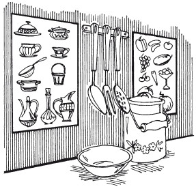 Двери, стены и полы Вам надоели привычные обои на стенах и унылые краски? Украсьте стены комнаты затейливыми фризами либо оклейте их оригинальными картинками или фотографиями, распечатанными на принтере (принтами). Межкомнатные двери также можно декорировать принтами, фотографиями, украсить витражами или мозаичными панно. Не останутся без внимания и полы. Вместо обычных ворсистых ковров на них можно постелить, к примеру, забавные коврики с аппликациями или «шкуры», вырезанные из ткани для обивки мебели. Дверь: вход-выход или украшение квартиры? Многие воспринимают дверь не только как место входа или выхода из комнаты. При желании она превратится в достойное украшение квартиры. Можно поручить профессиональным дизайнерам сложную роспись, мозаичное панно или модные витражи, а можно проявить фантазию и попытаться оформить дверь самостоятельно, к примеру с помощью открыток, фотопринтов или даже домашних тапочек. Материалов и инструментов для создания таких творений потребуется совсем немного: молоток, гвозди, клей и сами предметы декора. Для оформления двери, изображенной на рис. 31, подготовьте открытки, тонкий шнур и декоративные гвозди. Шнур закрепите зигзагом, натягивая его между предварительно вбитыми в полотно двери декоративными гвоздями. По этому зигзагу будет выстраиваться композиция. Дверь может также служить своеобразным фотоальбомом, если вместо открыток поместить на нее фотографии, и даже блокнотом, потому что под шнуром вполне можно оставлять записки с ценными указаниями для домочадцев. Если в качестве декора вы выбрали фотопринт, особое внимание уделите подбору картинок. ![]() Рис. 31. Дверь, украшенная открытками Закрепленные на двери стройные ряды домашних тапочек можно использовать в качестве хранилища для всевозможных мелочей: щеток, стелек, кремов для обуви, расчесок и т. п. Тапочки лучше всего подбирать одинакового размера и формы, иначе дверь приобретет неряшливый вид. Стенной фриз Стенной фриз в виде больших красных точек, декорированных цветами, наполнит интерьер вашей квартиры свежим дыханием весны. Подготовьте следующие материалы и инструменты: – краски для росписи по трафарету в ржаво-красных тонах; – пленка для трафаретов; – маркер для росписи по трафарету; – бумага для черчения; – подходящие по цвету шелковые декоративные цветы; – клеевые полоски; – циркуль; – макетный нож; – кисть для росписи по трафарету; – подложка для работы; – емкости для краски; – бумажные кухонные полотенца. Циркулем вычертите на листе бумаги для черчения круг диаметром 15 см. Сверху наложите пленку для трафаретов, маркером очертите круг и вырежьте его макетным ножом. Это будет трафарет. Если вы используете разноцветные краски, подготовьте отдельные трафареты для каждой из них. Чтобы точно располагать трафарет на стене, маркером начертите на горизонтальные линии по обеим сторонам круга. Наклейте на стену клеевую малярную ленту строго горизонтально и с помощью трафарета вычертите круги с интервалом 7,5 см. Затем вычертите второй ряд кругов, располагая их на 7,5 см ниже первого ряда. Удалите малярную ленту и с помощью трафарета распишите круги краской. Для росписи каждого круга наложите трафарет на стену и закрепите его клеевыми полосками. Разведите краску до требуемой консистенции, чтобы она не затекала за края трафа