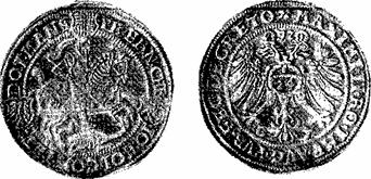 СЕРЕБРО ЭПОХИ ВОЗРОЖДЕНИЯ И XVII ВЕКА В ЕВРОПЕВ «Диалектике природы» Ф. Энгельс характеризует Возрождение как великую эпоху, «…которую мы, немцы, называем, по приключившемуся тогда с нами национальному несчастью, Реформацией, французы — Ренессансом, а итальянцы — Чинквеченто, и содержание которой не исчерпывается ни одним из этих наименований». Главным «национальным несчастьем» эпохи Реформации было поражение первого акта буржуазной революции. В XVI и XVII вв. на территории Германии происходили кровопролитные войны, которые, особенно Тридцатилетняя война 1618 — 1648 гг., и прямо и косвенно отразились и на состоянии горного дела и определенным образом повлияли на чеканку монет. В XVI в. и первой половине XVII в. в странах Западной Европы зарождается капиталистический уклад в недрах феодального общества. В ряде стран Западной Европы складывался и развивался абсолютизм и в основном завершился процесс образования централизованных государств. Германия оставалась в состоянии экономической и политической раздробленности: продолжала существовать «Священ-ная Римская империя» с ее сложным составом, в которой шла борьба между разными группами князей и других «имперских чинов», крупных и мелких. Чехия и часть Венгрии оказались под властью Габсбургов (другая часть Венгрии была захвачена турками), образовалось многонациональное Австрийское государство. К середине XVII в. Швеция заняла на Балтике господствующее положение, которое было утрачено Данией, сохранившей, однако, в своей полной зависимости Норвегию. Из Польского королевства и Великого княжества Литовского сложилась Речь Посполитая. Великие географические открытия привели к установлению регулярных связей и торговому обмену между разными странами и народами мира. Огромное значение имело открытие месторождений серебра в Мексике, Перу, Боливии, Чили. «Открытие Америки, — говорит Ф. Энгельс по поводу причин географических открытий, — было вызвано жаждой золота, которая еще до этого гнала португальцев в Африку… потому что столь сильно развившаяся в XIV и XV вв. европейская промышленность и соответствовавшая ей торговля требовали больше средств обмена, чего Германия — великая страна серебра в 1450 — 1550 гг. — дать не могла»[23]. Брауншвейг-ЛюнебургМонеты этого герцогства и месторождения Гарца, из которых добыто серебро для чеканки монет, настолько обширная тема, что только о них можно бы написать отдельную книгу; эта тема уже была начата в главе о серебре средних веков. В октябре 1553 г. г. Гослар потерял свои Раммельс-бергские рудники, хозяевами которых стали герцоги Брауншвейгские. Из добывавшегося в Гарце серебра герцоги чеканили в Госларе монеты, среди которых встречаются очень интересные по сюжету. В Госларе в 1578 г. от имени Юлия, герцога Брауншвейг-Люнебург-ского, отчеканена монета, называемая лихтталером («лихт» — свет, свеча). На ней изображен дикий человек («вильдеман») с дубиной в одной руке и светильником в другой. В его честь названо месторождение серебра Вильдеман и городок в Верхнем Гарце (рис. 39). ![]() Рис. 39. Лихтталер. На смену лихтталерам, выпускавшимся в 1569 — 1587 гг., пришли брилленталеры («брилль» — очки), чеканившиеся в 1586 — 1589 гг. от имени того же герцога Юлия (рис. 40). Лицевая сторона (где обычно бывает портрет короля или князя) брилленталера буквально насыщена изображениями и 