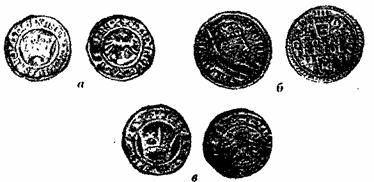 Новая Люнебургская линия (с основным Целль-ским княжеством) Брауншвейг-Люнебургского дома возникла в начале XVII в. До 1633 г. во главе ее был герцог Христиан, затем его брат Август, а с 1636 по 1648 г. — третий брат Фридрих. Но их монеты (за исключением монет Фридриха 1647 — 1648 гг) были обычными — с портретом герцога или Вильдеманом на его месте. Поэтому, когда в ходе поиска монет для иллюстрации данной книги, в коллекцию попал двойной люнебургский талер 1672 г., показывающий добычу серебряных руд (рис. 47, а), уже сама по себе такая находка была огромной радостью. Вместе с тем она вызвала и большое удивление: сторона монеты, на которой показано месторождение, отчеканена тем же самым (не подобным, а тем же) штемпелем, что и ранее имевшаяся в коллекции монета в iVa талера (1681 г.) герцога Эрнста-Августа, Вызвала удивление и буква «F» в центре лицевой стороны монеты, так как в 1672 г. не было правившего в каком-либо княжестве (т е имевшего и право чеканки монет) герцога Брауншвейг-Люнебурга, имя которого начиналось бы с этой буквы. Но тут обрадовала крохотная, массой примерно 0,8 г серебряная монетка в один мариенгрош (1/36 талера) 1675 г. (рис. 47, 6). На ней, как и на двойном талере, находится девиз «Ex duns gloria» — «Из терпения слава», но при этом есть с небольшими сокращениями и имя князя — «Иоанн-Фридрих божьей милостью гер-Цог Брауншвейг-Люнебурга». ![]() Рис. 47. Монеты Иоанна Фридриха: а — двухталеровая (Vs натур вел); б — I мариенгрош; в — гульден. Оказалось, что в центре большой монеты находится не просто буква «F», а монограмма из «F» и «J», причем вторая наложена на первую таким образом, что она практически незаметна. Затем снова удивление: на гульдене 1676 г. с портретом и титулом того же Иоанна-Фридриха на оборотной стороне изображена скала в море и на ней пальма (рис. 47, в). А ведь Брауншвейг — Люнебург не имел выхода к морю. Причем же тогда пальма на острове? Пришлось, поскольку другие источники не известны, обратиться к старым каталогам монет[24]. В каталоге нашлось описание двойного талера 1678 г. из серебра рудника «Герцог Иоанн-Фридрих» с портретом и титулом этого герцога. Еще большую радость принесло описание медальона (также без иллюстрации) массой 29, 2 г, диаметром 65 мм, без даты чеканки. На одной его стороне портрет и титул Иоанна-Фридриха, а на другой — тот же Иоанн-Фридрих во весь рост, одетый «наполовину, как рудокоп, наполовину, как рыцарь». Под этим изображением надпись: «Hie ima et summa». Иоанн-Фридрих был одним из младших сыновей герцога Георга, владетеля «удельного» княжества Кален-бергского Люнебургской линии. Этот Георг в Тридцатилетней войне был на стороне то католиков, то (под конец) — протестантов и шведов. Перед одним из сражений в октябре 1640 г. четыре генерала устроили крепкую попойку. Из ее участников, как пишет К. Маркс: «.. ландграф Христиан Гессенский и Отто Шаумбургский умерли еще в ноябре 1640 г. а 2 апреля 1641 г. умер герцог Георг Люнебургский». (В мае 1641 г. умер и четвертый участник — швед Банер) После смерти Георга владетелем Каленберга в 1641 г. стал старший сын Христиан-Людвиг. Но в 1648 г., когда умер упоминавшийся выше его бездетный дядя Фридрих, он стал наследником основного Целль-ского княжества Люнебургской линии, и по этому поводу был отчеканен тройной талер (рис 48). Кален-берг же перешел ко второму сыну Георга — Георгу-Вильгельму. Христиан — Людвиг умер в 1665 г. ![]() Рис. 4
