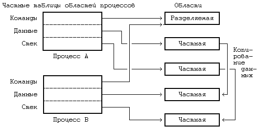 6.3 КОНТЕКСТ ПРОЦЕССА 6.4.3 Переключение контекста 6.4.4 Сохранение контекста на случай аварийного завершения 6.4.5 Копирование данных между адресным пространством системы и адресным пространством задачи 6.5 УПРАВЛЕНИЕ АДРЕСНЫМ ПРОСТРАНСТВОМ ПРОЦЕССА 6.5.1 Блокировка области и снятие блокировки 6.5.2 Выделение области 6.5.3 Присоединение области к процессу 6.5.6 Освобождение области 6.6.2 Алгоритмы приостанова и возобновления выполнения ГЛАВА 6. СТРУКТУРА ПРОЦЕССОВВ главе 2 были сформулированы характеристики процессов. В настоящей главе на более формальном уровне определяется понятие «контекст процесса» и показывается, каким образом ядро идентифицирует процесс и определяет его местонахождение. В разделе 6.1 описаны модель состояний процессов для системы UNIX и последовательность возможных переходов из состояния в состояние. В ядре находится таблица процессов, каждая запись которой описывает состояние одного из активных процессов в системе. В пространстве процесса хранится дополнительная информация, используемая в управлении протеканием процесса. Запись в таблице процессов и пространство процесса составляют в совокупности контекст процесса. Аспектом контекста процесса, наиболее явно отличающим данный контекст от контекста другого процесса, без сомнения является содержимое адресного пространства процесса. В разделе 6.2 описываются принципы управления распределением памяти для процессов и ядра, а также взаимодействие операционной системы с аппаратными средствами при трансляции виртуальных адресов в физические. Раздел 6.3 посвящен рассмотрению составных элементов контекста процесса, а также описанию алгоритмов управления контекстом процесса. Раздел 6.4 демонстрирует, каким образом осуществляется сохранение контекста процесса ядром в случае прерывания, вызова системной функции или переключения контекста, а также каким образом возобновляется выполнение приостановленного процесса. В разделе 6.5 приводятся различные алгоритмы, используемые в тех системных функциях, которые работают с адресным пространством процесса и которые будут рассмотрены в следующей главе. И, наконец, в разделе 6.6 рассматриваются алгоритмы приостанова и возобновления выполнения процессов. 6.1 СОСТОЯНИЯ ПРОЦЕССА И ПЕРЕХОДЫ МЕЖДУ НИМИКак уже отмечалось в главе 2, время жизни процесса можно теоретически разбить на несколько состояний, описывающих процесс. Полный набор состояний процесса содержится в следующем перечне: 1. Процесс выполняется в режиме задачи. 2. Процесс выполняется в режиме ядра. 3. Процесс не выполняется, но готов к запуску под управлением ядра. 4. Процесс приостановлен и находится в оперативной памяти. 5. Процесс готов к запуску, но программа подкачки (нулевой процесс) должна еще загрузить процесс в оперативную память, прежде чем он будет запущен под управлением ядра. Это состояние будет предметом обсуждения в главе 9 при рассмотрении системы подкачки. 6. Процесс приостановлен и программа подкачки выгрузила его во внешнюю память, чтобы в оперативной памяти освободить место для других процессов. 7. Процесс возвращен из привилегированного режима (режима ядра) в непривилегированный (режим задачи), ядро резервирует его и переключает контекст на другой процесс. Об отличии этого состояния от состояния 3 (готовность к запуску) пойдет речь ниже. 8. Пр