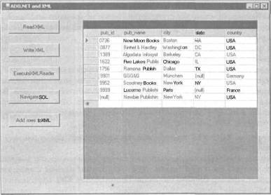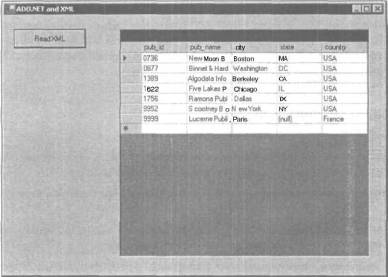 ГЛАВА 10ADO.NET и XML Оставляя в стороне маркетинговую шумиху, следует отметить, что XML действительно способствует выполнению множества задач, связанных с программированием бизнес-решений. Это особенно верно в тех случаях, когда огромное значение приобретает интеграция разных систем и платформ в рамках одной или нескольких компаний. Поэтому при создании интегрированной среды разработки Visual Studio .NET одной из основных целей была расширенная поддержка XML. Язык XML является форматом устойчивого хранения объекта DataSet, т.е. при сохранении на жестком диске объекта DataSet используется универсальный формат XML, а не двоичный или какой-то другой специализированный формат. Аналогично, при обмене объектами DataSet между разными процессами или компьютерами данные передаются в потоке формата XML. В прежних главах показано, что объект DataSet не зависит от источника данных, которые он содержит. Для него данные — это всего лишь данные, независимо от их происхождения. То же самое верно, когда источник данных имеет формат XML. Объект DataSet обладает средствами чтения и записи данных в формате XML и/или информации о схеме данных. В модели ADO.NET эти средства обладают гораздо более высокими функциональными возможностями по сравнению с моделью ADO. Более того, благодаря объекту XmlDataDocument приложение может просматривать данные объекта DataSet и манипулировать ими с помощью реляционных инструментов и/или XML-инструментов, в зависимости от ситуации. Полное описание XML и связанных с ним технологий и инструментов выходит за рамки данной книги. В главе 9, "XML и .NET", представлены основные сведения о расширенной поддержке XML на платформе.NET Framework, а в этой главе описываются основы интеграции ADO.NET и платформы .NET Framework. Более подробную информацию об этом можно найти в справочных материалах Visual Studio .NET и платформы .NET Framework, а также на Web-узле MSDN по адресу: http://msdn.microsoft.com. Основные принципы чтения и записи XML-данныхВ главах 5, "ADO.NET: объект DataSet", и 6, "ADO.NET: объект DataAdapter" демонстрируются программируемые и прямые способы загрузки данных в объект DataSet из базы данных. Еще один метод загрузки данных основан на чтении XML-данных. Как и следовало ожидать, в объект DataSet данные можно записывать в XML-формате. Более того, объект DataSet обладает средствами чтения и записи XML-схем либо вместе с XML-данными, либо раздельно. Чтение XML-данныхВ ADO.NET предусмотрены богатые и разнообразные инструменты чтения и записи XML-данных и XML-схем. Далее рассматриваются основные способы использования предназначенных для этого методов и свойств. Как и в предыдущих главах, для демонстрации взаимодействия модели ADO.NET и XML здесь приводится практический пример их использования на основе простой формы. 1. Запустите интегрированную среду разработки Visual Studio .NET и создайте новый проект Visual Basic Windows Application. Для этого в диалоговом окне New Project (Новый проект) выберите тип проекта Visual Basic Project в области Project Types (Типы проектов), а затем шаблон Windows Application (Приложение Windows) в области Templates (Шаблоны). 2. Назовите проект ADO-XML. 3. Укажите путь к файлам проекта. 4. Увеличьте размер формы Form1. 5. В окне свойств Properties укажите значение frmXML для свойства (Name) и значение ADO.NET and XML для свойства Text формы Form1. 6. В верхнем левом углу формы создайте кнопку, перетаскивая ее из панели элементов управления. 7. В окне свойств Properties укажите значение btnReadXML для свойства (Name) и значение Read XML для свойств