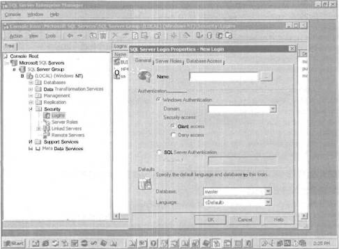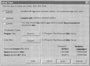Установка и запуск Microsoft SQL ServerРабота с сервером баз данных значительно отличается от совместного использования файла базы данных Microsoft Jet. Для успешной работы с SQL Server нужно познакомиться с новыми понятиями и дополнительными возможностями. Однако установка и использование SQL Server 2000 организована гораздо проще, чем в предыдущих версиях, особенно в версии 6.5 и более ранних. Ниже перечисляются основные условия для установки и работы разных редакций сервера базы данных SQL Server 2000. • SQL Server 2000 Standard Edition — это стандартная редакция, которая содержит основной сервер баз данных для рабочей группы или отдела. • SQL Server 2000 Enterprise Edition — это корпоративная редакция, которая содержит все элементы стандартной редакции и предлагает повышенную производительность и другие компоненты для крупных организаций, Web-узлов и хранилищ данных. • SQL Server 2000 Personal Edition — это персональная редакция, предназначенная для мобильных пользователей, которые часто отсоединены от своей сети, но нуждаются в SQL Server для локального хранения данных и запуска отдельных приложений на клиентском компьютере. В отличие от стандартной и корпоративной редакций, для которых требуется серверная версия операционной системы Windows NT или Windows 2000, персональная редакция может работать с Windows 2000 Professional, Windows NT 4.0 Workstation и Windows ME или Windows 98. Эта редакция ограничивает производительность сервера, если одновременно запущено более пяти пакетных заданий. • SQL Server 2000 Developer Edition — это редакция для разработчиков, включающая все элементы корпоративного издания,но с лицензией только для разработки и тестирования приложений SQL Server; она не может использоваться как рабочий сервер баз данных. • SQL Server 2000 Desktop Engine(MSDE) — это настольное ядро, содержащее большинство элементов стандартной редакции. Оно может свободно распространяться как часть небольшого приложения или демонстрационных версий. Размер базы данных, поддерживаемой этим ядром, не превышает 2 Гбайт и, подобно персональной редакции, ее производительность заметно падает при выполнении одновременно более пяти пакетных заданий. Однако она не содержит графических инструментов разработки и управления. НА ЗАМЕТКУ • SQL Server 2000 Windows CE Edition — это редакция, используемая как хранилище данных на портативных устройствах под управлением операционной системы Windows СЕ и способная реплицировать данные из других изданий SQL Server 2000. Требования для инсталляции SQL Server 2000Для инсталляции SQL Server 2000 требуется компьютер с процессором Pentium (или совместимым с ним) с частотой не менее 166 МГц, пространство на жестком диске от 95 до 270 Мбайт (270 Мбайт для типичного варианта инсталляции и 44 Мбайт для Desktop Engine), дисковод для компакт-дисков, броузер Internet Explorer версии 5.0 или выше, а также совместимая операционная система (см. выше). Для оперативной памяти установлены следующие требования: • для стандартной редакции Standard Edition — минимум 64 Мбайт; • для корпоративной редакции Enterprise Edition — минимум 64 Мбайт (рекомендуется 128 Мбайт); • для персональной редакции Personal Edition — минимум 64 Мбайт для операционной системы Windows 2000 и 32 Мбайт для других операционных систем; • для редакции Developer Edition — минимум 64 Мбайт; • для ядра Desktop Edition — минимум 64 Мбайт для операционной системы Windows 2000 и 32 Мбайт для других операционных систем. Если вы уже пытались запускать SQL Server на компьютере с процессором Pentium (или совместимым с