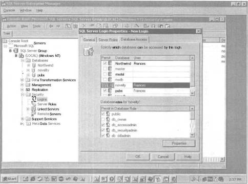 ГЛАВА 3Знакомство с SQL Server 2000 В прошлом многие программисты начинали создание приложений баз данных, используя язык Visual Basic и базу данных Microsoft Access с ядром Jet. Как только база данных разрасталась до нескольких тысяч записей или к ее услугам обращались несколько пользователей, наступал "великий перелом". Конфликты при доступе к данным со стороны пользователей, уменьшение производительности и отсутствие удобных инструментов управления данными и сервером привели к тому, что разработчики стали искать способы решения этих проблем с помощью других архитектур баз данных. Одной из таких архитектур стала модель вычислений типа клиент/сервер (или модель распределенных вычислений). Суть архитектуры клиент/сервер заключается не только в предоставлении многопользовательского режима работы с базой данных, к тому же с такой задачей вполне может справляться Jet. В многопользовательской архитектуре несколько пользователей используют одни и те же данные в сети, т.е. один или несколько файлов базы данных находятся на сервере, к которому могут осуществлять доступ клиентские компьютеры. Несмотря на то что Microsoft Access также поддерживает многопользовательский ре жим работы, эту программу нельзя отнести к системам клиент/сервер, поскольку все необходимые операции выполняются на отдельном компьютере клиента. Например, для извлечения с помощью команды SQL одной записи из таблицы, включающей 50 тыс. записей, нужно перенести на компьютер клиента все строки (или по крайней мере их индексы) таблицы. При этом на стороне сервера не предусмотрено никакой "интеллектуальной" части для специализированной обработки данных, например для выполнения запроса и возвращения только запрошенных данных. В архитектуре клиент/сервер предусмотрена серверная часть (back end), т.е. специализированное программное обеспечение, которое способно извлекать и кэшировать данные, разрешать конфликты доступа к данным со стороны клиентов, а также обеспечивать безопасность. Например, СУБД SQL Server компании Microsoft получает запросы от клиентских компьютеров, выполняет их на серверном компьютере, а затем возвращает клиентскому компьютеру только запрошенные данные. Таким образом, для извлечения одной записи из таблицы, включающей 50 тыс. записей, серверу будет передана команда SELECT, серверное программное обеспечение выполнит эту команду и возвратит клиенту только искомую запись. Очевидно, что при этом сетевой трафик значительно сокращается, а общая производительность повышается еще и потому, что вычислительная мощность (т.е. быстрота работы процессора и объем оперативной памяти) компьютера-сервера гораздо выше, чем компьютера-клиента. Поэтому в такой архитектуре будут быстрее выполняться команды и извлекаться данные. Если вы работаете с Visual Basic .NET, то очевидно, что в качестве серверной части (или сервера баз данных) можно использовать Microsoft SQL Server, поставляемый вместе с Visual Basic .NET и Visual Studio .NET. Перечень разных версий Microsoft SQL Server, которые поставляются вместе с Visual Basic .NET и Visual Studio .NET, приводится далее в главе. СОВЕТ В этой главе внимание фокусируется на основах использования SQL Server 2000. Сначала предлагается введение, посвященное его установке, а затем излагаются базовые сведения об использовании SQL Server 2000, необходимые для понимания материала и примеров в остальной части книги. Излагаемого здес