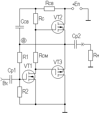 4. УСИЛИТЕЛИ МОЩНОСТИ4.1. Общие сведенияУсилители мощности (УМ) предназначены для передачи больших мощностей сигнала без искажений в низкоомную нагрузку. Обычно они являются выходными каскадами многокаскадных усилителей. Основной задачей УМ является выделение в нагрузке возможно большей мощности сигнала, усиление напряжения в нем является второстепенным фактором. Основными задачами при проектировании УМ являются: ◆ обеспечение режима согласования выходного сопротивления УМ с нагрузкой с целью передачи в нагрузку максимальной мощности; ◆ достижение минимальных нелинейных искажений сигнала; ◆ получение максимального КПД. УМ классифицируются по: ◆ способу усиления — на однотактные и двухтактные; ◆ способу согласования — на трансформаторные и бестрансформаторные; ◆ классу усиления — на классы A, B, AB, C, D. В качестве методов проектирования могут применяться: ◆ графоаналитические (построение ДХ и т.д.); ◆ по усредненным параметрам. 4.2. Классы усиленияДля всех рассмотренных ранее усилительных каскадов предполагалось. Что они работают в режиме класса А. Выбор рабочей точки покоя, например для БТ, (см. рисунок 2.10) производится таким образом, чтобы входной сигнал полностью помещался на линейном участке входной ВАХ транзистора, а значение Iб0 располагалось на середине этого линейного участка. На выходной ВАХ транзистора в режиме класса А рабочая точка (Iк0, Uк0) располагается на середине нагрузочной прямой так, чтобы амплитудные значения сигналов не выходили за те пределы нагрузочной прямой, где изменения тока коллектора прямо пропорциональны изменениям тока базы. Поскольку режим А характерен работой транзисторов на почти линейных участках своих ВАХ, то УМ в этом режиме будет иметь минимальные НИ (обычно KГ≤1%). При работе в режиме класса А транзистор все время находится в открытом состоянии, следовательно, угол отсечки (половина времени за период, в течение которого транзистор открыт) φост=180°. Потребление мощности источника питания происходит в любой момент, поэтому каскады, работающие в режиме класса А, характеризуются невысоким КПД (в идеале — 50%, реально — (35…45)%). Режим усиления класса А в УМ применяется в тех случаях, когда необходимы минимальные НИ, а мощность и КПД не имеют решающего значения. Более мощные варианты выходных каскадов работают в режиме класса В, характеризующегося φост=90° (рисунок 4.1). Рисунок 4.1. Режим класс B В режиме покоя транзистор закрыт и не потребляет мощности от источника питания, а открывается только в течение половины периода входного сигнала. Относительно небольшая потребляемая мощность позволяет получить в УМ класса B значение КПД до 70%. Режим класса В обычно применяется в двухтактных УМ. Основной недостаток УМ класса B — большой уровень НИ (KГ≤10%). Режим класса АВ занимает промежуточное значение между режимами класса А и В и применяется в двухтактных УМ. В режиме покоя через транзистор протекает небольшой ток покоя Iк0 (рисунок 4.2), выводящий основную часть рабочей полуволны входного гармонического сигнала на участок ВАХ с относительно малой нелинейностью. Рисунок 4.2. Режим класс AB Угол отсечки в режиме класса АВ достигает (120…130)°, КПД и НИ — средние между значениями для режимов классов А и В. В режиме класса C транзистор заперт смещением Uсм (рисунок 4.3), φост=90°, поэтому УМ класса С более экономич