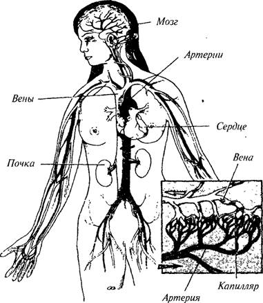 Жизненные функции Высокое давление крови, или гипертензия, сильно повышает риск развития атеросклероза, в просторечии известного как «затвердение» артерий. Название подходит для этой болезни как нельзя более удачно. Атеросклероз – это осаждение сгустков крови, жира и кальция на стенках артерий, которое заставляет обычно эластичную артерию становиться жесткой и частично или полностью закупоривает ее (см. Рисунок 1). Такое закупоривание ведет к серьезным последствиям. Но прежде чем говорить об атеросклерозе, нужно рассказать о нескольких основных принципах работы нашего организма. По артериям кровь поступает от сердца к клеткам. Ткань – это просто особая группа клеток, имеющая общую функцию. Орган – это сочетание нескольких групп тканей с общей функцией. Например, сердце – это орган, состоящий из мышцы и других видов тканей. Функция сердца – накачивать кровь. Кровь – это еще один вид ткани. Кровь переносит по артериям и другим сосудам питательные вещества, такие как протеины, углеводороды, жиры и, конечно, кислород, которые поддерживают жизнь тканей. Каждая клетка медленно «сжигает» свои питательные вещества с помощью кислорода, вырабатывая полезную энергию и поддерживая жизнь организма. Рисунок 1. Вид нормальной, незаблокированной артерии по сравнению с артерией, пораженной атеросклерозом. В самом начале эволюции большинство организмов были одноклеточными, то есть состояли из одной-единственной клетки и обитали в море. Процесс получения питательных веществ для таких организмов был очень простым. Они получали их непосредственно из моря, а затем выделяли продукты жизнедеятельности в этот огромный резервуар с помощью простого процесса, называемого диффузией (см. Рисунок 2). Так как постепенно организмы становились многоклеточными и все более и более сложными, клетки уже не могли получать питательные вещества напрямую. Одни клетки были окружены другими, поэтому питательные вещества и отходы уже не могли проникать внутрь и наружу с помощью диффузии. Чтобы донести содержимое окружающей среды до каждой отдельной клетки организма, необходима была циркуляция (см. Рисунок 3). Наша кровь – это часть такого «воображаемого» моря. Кровь переносит к клеткам кислород от легких и питательные вещества от пищеварительных органов. Специальные органы, такие как почки, занимаются утилизацией отходов, которые доставляет к ним кровь, так как теперь уже нельзя просто при помощи диффузии «извергнуть» их в море. В этой системе циркуляции те сосуды, по которым питательные вещества поступают от сердца к тканям, называются артериями, а те, по которым кровь возвращается к сердцу и легким, называются венами. Тончайшие сосуды, соединяющие артерии и вены, называются капиллярами (см. Рисунок 3). Капилляры имеют очень тонкие стенки. Именно через них кровь и клетки обмениваются питательными веществами и отходами (см. Рисунок 4). Капилляры и остальная часть системы циркуляции переносят питательные вещества к клеткам, чтобы они могли поддерживать жизнь организма. Движущая сила внутри кровеносных сосудов – это давление крови, которое можно измерить и выразить в цифрах. Давление не должно выходить за нормальные пределы, так чтобы ткани снабжались кровью в нужном объеме. Чтобы определить, каким должно быть это «нормальное» давление, исследователи изм