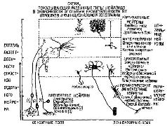 ![]() Каким же образом нейронная теория получила в дальнейшем всеобщее признание и почему мы вновь вернулись к этой проблеме сегодня? Спор вокруг нейронной теории достиг своей кульминации в конце XIX в. Непрерывность нервной ткани признавали такие известные нейроанатомы, как Билыповский и Гольджи; Валытейер и Рамон-и-Кахал рассматривали нейрон как независимый, но соприкасающийся с другими нейронами. Однако убедительный анализ был дан не этими нейроанатомами, а сэром Чарлзом Шеррингтоном в его лекциях в Йельском университете, опубликованных как классическая работа «Интегративная деятельность нервной системы». Ранее Шеррингтон совместно с Фостером предложил термин «синапсы» для обозначения предполагаемых связей между отдельными нервными клетками. Он внес большой теоретический вклад в нейронную теорию, противопоставив нейрофизиологические данные, основанные главным образом на изучении электрических явлений в нервных стволах, нейропсихологическим, базирующимся на изучении рефлекторной деятельности у «спинального животного» (нашедшей отражение в концепции рефлекторной дуги, см. гл. V). Шеррингтон высказал мысль, что парадоксальные расхождения результатов нейрофизиологических и поведенческих исследований могут получить объяснение, если обратиться к нейроанатомическому описанию синапсов. Основные расхождения состояли в том, что (1) в изолированном стволе сигнал, вызванный стимуляцией какой-нибудь его точки, передается в двух направлениях, тогда как проведение сигнала при осуществлении спинального рефлекса происходит в одном направлении, и (2) скорость проведения импульса по нервному стволу значительно выше, чем скорость ответа, получаемого в результате рефлекса. Помимо этих, было отмечено девять других расхождений. Большинство из них касалось степени соответствия между адресованным организму стимулом и полученным ответом: соответствие всегда было большим для нервного, чем для поведенческого ответа. Чтобы объяснить эти расхождения, синапсам приписывались такие предполагаемые функции, как пространственная конвергенция и временная суммация, утомляемость, облегчение и торможение. Следующее утверждение Шеррингтона дает представление о его концепции: «Наиболее характерными особенностями проведения в рефлекторных дугах по сравнению с нервными стволами являются: 1) меньшая скорость, если судить по измерениям латентного периода между нанесением раздражения и появлением конечного эффекта, причем это различие больше для слабых раздражителей, чем для сильных; 2) менее близкое соответствие между моментом прекращения раздражения и моментом прекращения конечного эффекта (т. е. имеет место отчетливое «последействие»); 3) менее близкое соответствие между ритмом раздражения и ритмом конечного эффекта; 4) менее близкое соответствие между градуальным увеличением интенсивности раздражения и градуальным увеличением интенсивности конечного эффекта; 5) значительное сопротивление к прохождению нервного импульса, которое, однако, без труда преодолевается последовательностью импульсов (временная суммация); 6) необратимость направления проведения по сравнению с обратимостью в нервных стволах; 7) утомляемость в противоположность сравнительной неутомляемости нервных стволов; 8) более значительная изменчивость пороговы