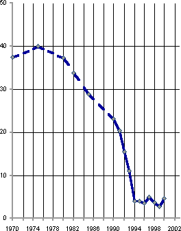 При этом нежелание банков инвестировать в отечественную экономику не было преодолено даже при самом высоком уровне прибыльности отдельных отраслей. Выше говорилось, что в 2001 г. сальдированный финансовый результат (прибыль минус убыток) в промышленности составил лишь 84,6 % от уровня 2000 г. Но вот как обстояло дело в 2000 г. В цитированной выше справке говорится: