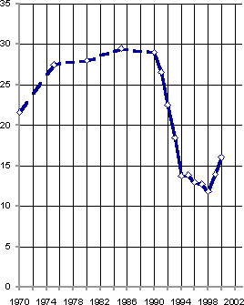 Раздел 6 Транспорт Источники: Транспорт — «кровеносная система» страны. Современное индустриальное общество нуждается в перемещении больших масс грузов и пассажиров на большие расстояния по всей территории страны и за рубеж. Особенно велико значение транспорта для России с ее исключительно обширной территорией и удаленностью источников сырья, энергоносителей и промышленных центров. Транспортная система РСФСР в советский период развивалась как единое целое в масштабах всего СССР. В материально-техническую базу этой системы делались большие капиталовложения: увеличивалась протяженность путей сообщения; строились новые транспортные объекты — дороги, порты, трубопроводы, аэровокзалы и т. п. Грузооборот всех видов транспорта: автомобильного, авиационного, воздушного, водного, морского, трубопроводного — рос стабильными темпами. В годы реформы транспортная система РФ погрузилась в глубокий кризис. Динамика суммарного объема перевозок всеми видами транспорта представлена на рис. 6–1.[28] Рис. 6–1. Грузооборот транспорта общего пользования в РСФСР и РФ (млрд. тонно-км) Произошло резкое сжатие объема всех видов перевозок, изменение их структуры, переориентация с внутрироссийского на международное сообщение, причем в большой мере — на страны вне СНГ («дальнее зарубежье»). Главной причиной уменьшения грузопотоков стало сокращение промышленного и сельскохозяйственного производства в результате радикальной рыночной реформы и разрыва сложившихся за десятилетия хозяйственных связей между российскими регионами и республиками СССР, представлявшими собой единый народнохозяйственный комплекс. Тесная связь объемов производства и грузоперевозок видна из динамики обоих процессов, представленной на рис. 6–2. Рис. 6–2. Динамика грузовых перевозок железнодорожного транспорта и промышленного производства в РСФСР и РФ (1990=1): 1 — объем грузовых перевозок; 2 — промышленное производство На графике видно, что кривые движения обоих показателей почти в точности совпадают — транспортные потоки вполне соответствуют уровню производства. Другой причиной, которая связана с первой и образует вместе с нею порочный круг, послужило резкое повышение тарифов на грузоперевозки, которое сделало убыточным многие виды производства и способствовало его спаду. Кризис, вызванный реформой, проявился и в резком усилении сырьевой ориентации производства и экспорта. Кроме того, в результате разрушения сложившихся в советском хозяйстве производственных связей между регионами увеличилась доля перевозок в международном сообщении. Для транспорта особенно важным было ослабление хозяйственных связей между восточными и западными территориями России. Транспортные потоки, за исключением внешних сообщений, в основном замкнулись внутри регионов. С начала 90-х годов ежегодные объемы капиталовложений в развитие транспорта быстро снижались. Финансирование развития транспорта к 1999 году сократилось на 60 %. Финансовые ресурсы транспортных предприятий не только не обеспечивают необходимого технического переоснащения, но даже не позволяют поддерживать парк транспортных средств в надлежащем состоянии. Тяжелое финансовое положение и плохое использование технической базы вызвали ухудшение качественного состояния транспорта. В бедственном состоянии наход