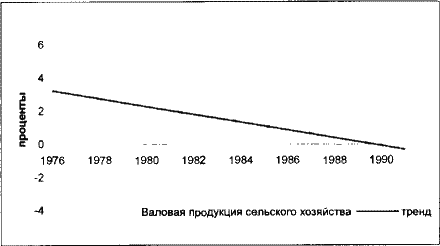 Источник: Расчеты по: WB WDI, 2005. Если цены на сырье в долгосрочной перспективе остаются низкими, а это случается нередко, то с течением времени выясняется, что обслуживание государственного долга обходится все дороже, доверие к стране-заемщику падает. Через два-три года становится ясно, что ни на каких условиях привлечь кредиты невозможно, валютные резервы истощены, страна вынуждена приостановить платежи по внешнему долгу, сократить импорт. Производство, уровень жизни падают. Проблемы, которые встали перед руководством страны, столкнувшейся с внешним шоком, не исчезают. Они переходят по наследству к тем, кто приходит на смену прежним властям. Но решать их при выросшем внешнем долге сложнее. Симметрично может развиваться ситуация, когда страна сильно зависит от масштабов закупок и цен на продукты, доминирующие по каким-либо причинам в ее импорте. Например, для СССР на длительное время таким продуктом стало зерно. Для стимулирования производства в аграрном секторе государство постоянно увеличивало объемы субсидий производителям в виде дифференцированных надбавок к ценам, льготных тарифов на сельскохозяйственную технику, пониженных кредитных ставок и периодических списаний долгов, прямых бюджетных трансфертов (инвестиций) и т. д. Общий объем субсидий в доходах производителей сельскохозяйственной продукции нарастал. СССР, включая и Россию, в последние десятилетия своего существования резко отстал от показателей продуктивности сельского хозяйства, характерных для развитых стран мира, то есть от мирового технологического прогресса в аграрном производстве (см. табл. 5.4). Положение в отрасли усугублялось государственной политикой в области продовольственного обеспечения населения. Ее доминантой был привлекательный в социальном смысле, но экономически не обоснованный принцип дешевизны продуктов питания для советских людей. Долгие годы при росте доходов населения и незначительных темпах прироста сельскохозяйственного производства, цены на основные продукты питания поддерживались на низком уровне. Таблица 5.4. Показатели продуктивности сельского хозяйства в СССР, Западной Европе и США