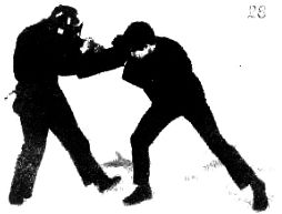 Глава 12. Техника нападения рукой — I Техника работы рук при нападенииВ джит кун до почти нет прямых нападений. Практически все захваты нападения косвенные: выполняются после обманных движений или при контрнападении. Совершенное нападение включает в себя стратегию, скорость, тайминг, обманные движения и точную оценку ситуации. Хороший борец пытается совершенствовать все эти элементы в своих ежедневных тренировках. Нападение вы должны осуществлять по собственному желанию либо в ответ на акцию противника, либо вызывая его на активные действия. Например, успешное нападение можно начать в тот момент, когда противник отведет свою руку, находящуюся в том направлении, в котором вы намеревались осуществить нападение. Другими словами, нападайте тогда, когда противник не защищен в направлении вашего удара. Ваш противник движется в противоположном направлении и должен либо совсем изменить направление движения, либо как-то приспособиться, а это даст вам время для успешного нападения. Простое нападение не всегда будет успешным. Это зависит от противника. Поэтому вы должны научиться варьировать приемы нападения и защиты. Они обескуражат противника, а вам помогут приспособиться к любому стилю борьбы. Вы должны изучать противника. Используйте его слабости и избегайте его сильных сторон. Например, если ваш противник хорошо блокирует удары, вы должны до нападения выполнить начать какие-нибудь обманные движения, чтобы смутить его и усложнить ему блокировку. Способ нападения зависит от способа защиты. Если ваш противник так же силен, как и вы, вам будет трудно осуществить успешное нападение, если вы не ослабите его защиту. Например, для того, чтобы затруднить противнику защищаться руками, ваше нападение руками должно состоять из полукруговых или круговых движений. Но круговая техника нападения не будет эффективной, если противник со стороны отражает ее простыми блокадами. Поэтому ваше нападение должно быть основано на ожидаемой реакции противника. Несерьезно осуществлять нападение с помощью технических приемов, пришедших вам в голову в данный момент и пускаться в запутанное сложное нападение, так как этим вы предоставляете противнику удобный случай успешно выполнить контрнападение. Чем больше запутано нападение, тем меньше у вас остается шансов проконтролировать его. Поэтому нападения должны быть простыми. Но если же ваш противник обладает одинаковой с вами скоростью и опытом, прекрасно оценивает расстояние, то простое нападение не принесет вам успеха. Против такого противника вы должны применить сложное нападение и использовать расстояние. Сложное нападение является вводной акцией, как например, обманные движения, приводящие противника в замешательство перед началом настоящего нападения. Успех сложной акции прямо зависит от реакции противника на обманные движения. Прежде чем использовать сложное нападение, вы должны изучить реакцию противника. Применение сложного нападения зависит от тайминга и ситуации. Многие сложные нападения пропадают зря, если в нужный момент нападающий не сделает обманных движений. Обманные движения необходимо выполнить за секунду до настоящего нападения. Сложное нападение должно состоять либо из кратких, быстрых комбинаций, либо из глубоких, быстрых и резких комбинаций. Однородное сложное на