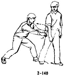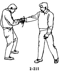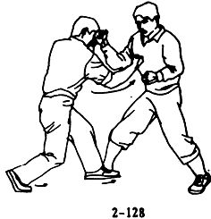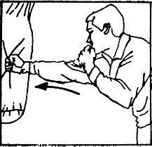 Часть II. ОСНОВНЫЕ ПРИЕМЫ РУКОПАШНОГО БОЯ ДУАНЬДА Глава 1. Тренировка частей тела, служащих «оружием» самообороны Основным «оружием» в технике самообороны служат части тела самого обороняющегося, которые он может использовать как инструмент обороны или нападения. Обороняющийся часто бывает совершенно не подготовлен к внезапному нападению и вынужден защищаться голыми руками. В данной главе попробуем разобраться в вопросе о том, как же научиться эффективно использовать для самообороны части своего тела. Опираясь на долгий практический опыт рукопашного боя, на данные физиологии и анатомии, выделим десять частей, которые можно противопоставить врагу: это голова, плечи, локти, запястья, кулаки, ладони, пальцы, ягодицы, колени и стопы. Необходимо не только искусно владеть этими частями тела, нужно еще и тренировать их стойкость к ударным нагрузкам, чтобы мышцы, кожа и кости стали прочными и твердыми, гибкими, подвижными и сильными. Тренировки должны идти с нарастающей нагрузкой, быть регулярными, идти от мягкого к твердому, от легкого к тяжелому, от отработки в стойке к действиям в движении, от общего к деталям. Тренировочные снаряды и методика занятий подбираются индивидуально, исходя из особенностей организма и уровня подготовки. Иными словами вы можете постепенно увеличивать количество повторений того или иного упражнения и количество подходов, увеличивать вес снаряда и силу удара, увеличивать жесткость мешка с песком, следя за тем, чтобы не травмировать ударные части тела и передающие усилие суставы. Необходимо постепенно увеличивать боевые возможности следующих частей тела: 1. Тренировка рук Рука — одна из важнейших в технике самообороны частей тела. В ходе схватки руки делают круговые движения, попеременно то открывая, то закрывая, то правую, то левую стороны, то верх, то низ, постоянно скрещиваясь перед грудью, подобно створкам дверей, поэтому достаточно важно отработать технику действия руками в атаке и оборонительной контратаке. Пять пальцев руки, состоящие из трех фаланг, в сочетании с ладонью можно по-разному применять, либо формируя кулак, либо пользуясь ладонью, пальцами или запястьем. В каждом случае существует своя ударная часть, достигается свой результат. Тренировками можно добиться укрепления всех указанных частей руки: 1. Кулак. Руку крепко сжать, пальцы напряжены, если при ударе кулак расслаблен, вам будет больно, поэтому он должен быть твердым и яростным. В различных приемах рукопашного боя применяются разнообразные удары кулаком: прямые, снизу, сбоку, сверху и др., в которых используются передняя поверхность кулака, тыльная сторона кулака, «кольцо кулака», «лезвие кулака» 2-е суставы пальцев руки). Поэтому необходимо по отдельности отрабатывать удар передней поверхностью, тыльной частью, «кольцом» кулака, суставами пальцев. Используйте для тренировок мешок с песком. Даже если в схватке вы попадете в кость соперника, полученная закалка позволит вам избежать травмы (рис. 2–1, 2–2): Рис. 2–1 Рис. 2–2 а) передняя поверхность кулака. Основная ударная нагрузка приходится на переднюю поверхность кулака. В схватке передней поверхностью кулака наносятся удары (прямые сбоку и снизу) в голову, шею, грудь и живот; б) суставы пальцев. Если второй сустав среднего пальца выступает из передней поверхности кулака, на него и п
