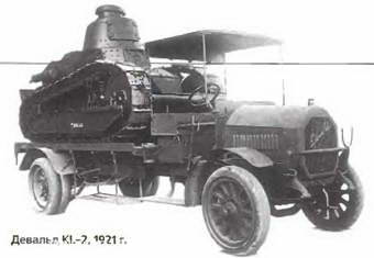ДЕВАЛЬД (DEWALD) Булонь-сюр-Сэн Франция 1911-1931 Основанная в 1896 г. небольшая фирма «Девальд» начала свою деятельность с легковых автомобилей, а с 1911 г. выпускала 3-тонный грузовик KF с 25-сильным мотором. Первые же образцы были представлены на военных конкурсах, но с началом войны фирма получила заказ только на 34 машины. Расцвет ее короткой деятельности в военной области пришелся на начало 20-х гг , когда Генштаб сухопутных войск Франции активно искал средства для быстрой переброски по шоссе легких танков FT17. Девальд KL-2,1921 г. В 1921 г. фирма «Девальд» предложила для этой цели свой 7,5-тонный грузовик KL-2 с собственным 5,7-литровым двигателем, 4-ступенчатой коробкой передач и цепным приводом задних колес с массивными шинами. В 1924-25 гг. она выпускала улучшенный тан-ковоз KL-3 с грузовой платформой длиной 4,2 м, а в 1928 г. представила его газогенераторный вариант GP-2 с 7-литровым мотором, работавшим на продуктах сгорания смеси древесных чурок с углем. В общей сложности было изготовлено около 600 грузовиков-танковозов. В1927-30 гг. фирма поставила в армию также несколько бортовых газогенераторных автомобилей GP-5 и DR грузоподъемностью 5~7т. |