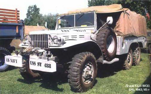 ДОДЖ (DODGE) Детройт/Уоррен США 1915- Вгоды Второй мировой войны компания «Додж», известная к тому времени прежде всего своими легковыми машинами, неожиданно превратилась в крупнейшего в мире изготовителя легких и средних многоцелевых полноприводных автомобилей, поставлявшихся в вооруженные силы США и страны антигитлеровской коалиции по ленд-лиз! Под названием «Братья Додж-(Dodge Brothers) она была основана в 1914 г в Детройте и вскоре стала одним из ведущих изготовителей простых и надежных легковых автомобилей, оснащенных электростартером и электрическими фарами. В качестве штабных, санитарных машин и полевых мастерских они использовались в армии США во время Первой мировой войны. Додж 30/35НР, 1915 г. Додж КС, 1934 г. Додж VK62B 1939 г ДоджТ202 VC1, 4X4,1939 г. Додж Т207/Т215 WC1/WC40, 4X4,1941/43 гг. Додж Т215 WC24, 4X4,1943 г. Додж Т207/Т215 WC10/WC26 «Кэрриолл», 4x4,1942/43 гг. Появлению грузовиков в программе «Доджа» способствовало присоединение в 1925 г. небольшой фирмы «Грэхем» (Graham), а включение компании «Додж» через два года в состав концерна «Крайслер» (Chrysler) позволило расширить гамму выпускаемой продукции и стабилизировать финансовое положение. К этому времени относится создание открытых штабных машин на легковых шасси, новой гаммы 3/4-тонных грузовиков с мотором мощностью 30 л.с. и грузопассажирских автомобилей с колесной формулой 6x4. В 30-е гг. «Додж» уже поставлял в вооруженные силы несколько штабных легковых автомобилей и капотных грузовиков с полезной нагрузкой от 500 кг до 3 т с рядными 6-цилиндровыми моторами (70-110 л.с), отличавшихся от серийных лишь цельнометаллическими кузовами с тентом и решеткой перед радиатором. Создание в середине 30-х гг. полноприводных 2-осных грузовиков дало толчок развитию новой военной автотехники. Первые из них, военные пикапы Т5А и 1,5-тонные модели Т9-К45 и LG45, были построены в 1934-36 гг. в кооперации с компаниями «Мармон-Херрингтон» (Магmon-Herrington) и «Тимкен» (Timken), однако уже через три года новый 1,5-тонный вариант ТЕ30 (4x4) получил все агрегаты собственного изготовления. В 1939-42 гг. в армии использовали также доработанные гражданские легковые автомобили и 3-тонные капотные грузовики VH48, VK62B (4x2) и WK60 (6x4) с 6-цилиндровыми моторами мощностью 90-100 л.с. и 5-ступенчатыми коробками передач. Между тем славу «Доджу» принесли семейства легких военных автомобилей, разра ботанные собственными силами и оснащенные шарнирами равных угловых скоростей «Бен-дикс-Вейсс» (Bendix-Weiss) С началом Второй мировой войны фирма начала серийный выпуск первой 1/2-тонной военной серии Т202 (4Х4) полной массой до 2,4 т с колесной базой 2945 мм. Она базировалась на шасси серийных 1-тонных пикапов и унаследовала от них специфические для коммерческих машин того времени внешние обтекаемые формы с округлым капотом и «надутыми» крыльями. Как и все последующие серии, они получили маркировку по модели 6-цилиндрового двигателя Т202 (3,3 л, 79 л.с.) и комплектовались 4-ступенчатой коробкой передач и одноступенчатой раздаточной, отключаемым приводом переднего моста, гидроприводом тормозов, неразрезными мостами «Додж» на полуэллиптических рессорах, 6-воль-товым электрооборудованием и всеми односкатными колесами с шинами размером 7.50-16. Их максимальная скорость составляла 80 км/ч. Додж Т214 WC52, 4X4,1942/45 гг. Додж Т214 WC51, 4X4,1942/45 гг. Додж Т214 WC56, 4X4,1942/45 гг. Додж Т214 WC58, 4X4,1943/45 гг. Штабной «Додж Т214 WC57» генерала Паттона, 1945 г. Эта серия заложила о