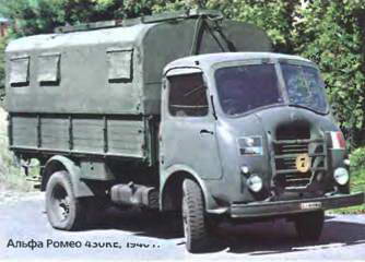 АЛЬФА РОМЕО (ALFA ROMEO) Милан Италия Авила Испания 1911- Известная своими скоростными легковыми и спортивными автомобилями, итальянская фирма «Альфа Ромео» выпускала также всевозможные грузовики, автобусы и обширную гамму военных машин. Она появилась в начале 1910 г. под названием А.Л Ф.А. (A.L.F.A.) или просто «Альфа», представлявшим собой аббревиатуру ее полного наименования «Анонима Ломбарда Фаббрика Аутомобили» (Anonima Lombarda Fabbrica Automobili) – «Ломбардское акционерное автомобильное общество». Уже в 1911-12 гг. ее первые легковые машины 24CV и 20/30CV в штабном и санитарном исполнениях начали поступать в итальянскую армию, сражавшуюся в то время с турками в северной Африке. Альфа Ромео 6С2500 Колониале, 1939 г. Альфа Ромео 800RE, 1941 г. Альфа Ромео 430RE, 1940 г Альфа Ромео F12 Ромео, 1958 г. В период между двумя мировыми войнами фирма, переименованная в «Альфа Ромео», занималась в основном созданием спортивных и гоночных автомобилей, но сильно пошатнувшееся во время экономического кризиса финансовое положение заставило ее в 1930 г. пополнить свою программу грузовыми машинами. Многочисленные военные конфликты, в которых Италия участвовала в 30-е гг., совершенно не повлияли на избранный фирмой курс выпуска исключительно гражданской техники, и только с началом Второй мировой войны «Альфа Ромео» взялась за изготовление армейских автомобилей. Их основой послужили достаточно прочные, надежные и совершенные гражданские машины, в отличие от продукции других фирм обладавшие весьма привлекательной внешностью. В 1939 г. «Альфа Ромео» переоборудовала свой престижный 5-местный кабриолет «6С2500» с 90-сильным мотором в штабную машину «Колониале» (Coloniale), поступившую на вооружение итальянской армии, расквартированной в Африке. От гражданского варианта он отличался упрощенным 4-дверным кузовом, охладителем масла, блокировкой дифференциала и дисковыми 19-дюймовыми колесами. Это была самая быстроходная штабная машина, развивавшая скорость около 130 км/ч. За три года их собрали 152 экземпляра. Более обширной оказалась гамма военных грузовиков «Альфа Ромео», которые разрабатывал испанский инженер Вильф-редо Рикарт (Wilfredo Ricart). С 1939 г. выпускался 4-тон ный вариант «430RE» с обтекаемой цельнометаллической кабиной над двигателем, получивший статус стандартизованного автомобиля армии Италии и признанный самым красивым грузовиком периода Второй мировой войны. Его оборудовали 80-сильным дизелем, 4-ступен-чатой коробкой передач с 2-ступенчатым редуктором, передней независимой пружинной подвеской, гидроприводом тормозов с вакуумным усилителем и 24-вольтовым электрооборудованием. Автомобиль мог перевозить 16 солдат и буксировать прицеп, развивая скорость 66 км/ч. Он выпускался до 1950 г. в исполнениях СР50 и СМ50 с удлиненной кабиной. В 1940 г. его преемником стал 6,5-тонный вариант «800RE» с новым 108-сильным дизелем с непосредственным впрыском и дополнительным 4-ступенча-тым редуктором в трансмиссии. В исполнении СР48 его выпуск продолжался до 1950 г. В 1939-44 гг. «Альфа Ромео» изготовляла также армейские 3-тонные капотные грузовики серии «500» – дизельные 75-сильные «500RE» и «500B/BR» с бензиновыми и газовыми моторами, а также штабные автобусы «500DR» на их базе. В годы войны она построила опытные образцы среднего колесного артиллерийского тягача 4x4 и легкого полугусеничного. С наступлением мира помимо модернизированных маши