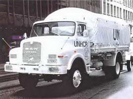 МАН (MAN) Линдау/Нюрнберг/ Мюнхен /Зальцгиттер Германия Вена Австрия 1915- Задолго до того как появи лись первые автомобили этой марки, в середине XIX века в Нюрнберге и Аугсбурге существовали два независимых машиностроительных завода, выпускавших паровые машины и железнодорожное оборудование. На одном из них инженер Рудольф Дизель (Rudolf Diesel) конструировал свои двигатели с воспламенением от сжатия, получившие впоследствии его имя. В конце позапрошлого века они слились в «Объединенные машиностроительные заводы в Аугсбурге и Нюрнберге» (Vereinigte Maschinen-fabnk Augsburg und Maschinen-baugesellschaft Nurnberg AG), название которых вскоре сделали более коротким – «Машиностроительный завод Аугс-бург-Нюрнберг» (Maschinen-fabrik Augsburg-Nurnberg AG), а с 1904 г. – просто МАН (MAN). Он выпускал промышленное оборудование, силовые агрегаты и мостовые конструкции, и только с началом Первой мировой войны в Линдау по лицензии фирмы «Заурер» (Saurer) началось изготовление 5-тонных грузовиков «МАН-Заурер». Из-за высокого авторитета швейцарского партнера они сразу же стали поступать в германскую армию. В 1916 г. в Нюрнберге приступили к выпуску целого семейства автомобилей МАН грузоподъемностью 2~4 т, изготовив до конца войны около 1000 машин. МАН 2Zc, 1924 г. МАН F1H6,1935 г. В межвоенный период МАН, не уделявший особого внимания военной продукции, занимался развитием конструкции и производства своих гражданских грузовиков и автобусов, создавая для них новые типы дизельных двигателей. Несмотря на это, уже в середине 20-х гг. в Рейхсвер и германскую полицию стали поступать 2,5-и 3,5-тонные модели «2Zc» и «3Zc» с 40-сильным бензиновым мотором и карданным приводом. В начале 30-х гг. к ним добавился 6-тонный 85-сильный вариант KVB/6, а также один из первых дизельных грузовиков МАН -низкорамная 4-тонная модель D1 с 80-сильным двигателем, предназначенная для переброски крупных воинских подразделений. С установлением в Германии фашистского режима фирму обязали всерьез заняться военной техникой, для создания которой в 1935 г. было образовано специальное конструкторское бюро. Его первой работой стал военный вариант 5-тонного коммерческого грузовика F1H6, получившего дизель мощностью 100-110 л.с. и деревянный кузов с про дольными скамьями и тентом. W1AH ML4500A, 4х4,1942 г. Амфибия «МАН Айнхайтс-Дизель», 8х8,1940/41 гг. МАН 630L2AE, 4х4,1957 г. МАН 670L3AE, 4х4,1959 г. С 1938 г. выпускался 6,5-тонный вариант F4 со 150-сильным мотором Серийное производство армейских машин началось лишь с началом Второй мировой войны. В 1940-44 гг. на МАНе изготовили около 2 тыс. доработанных коммерческих 3-тонных грузовиков и автобусов Е3000 с 70-сильным дизельным мотором. Основными армейскими автомобилями военного времени стали 4,5-тонные ML4500S (4x2) hML4500A (4х4) с 6-цилинд ровым 110-сильным дизелем D1040, 5-ступенчатой коробкой передач, пневмоприводом тормозов, цельнометаллической кабиной и разными кузовами. До конца войны их изготовили около 2 тыс. экземпляров, не считая машин, собранных на австрийской фирме ОАФ (OAF). Наиболее серьезным приобщением к военной автотехнике стало участие в проектировании стандартизованного семейства 2,5-тонных грузовиков «Айнхайтс-Дизель» (Einheits-Diesel) 6х6, для которых на МАНе был создан 6-цилиндровый двигатель HWa-526D (6,2 л, 80 л.с.) с непосредственным впрыском топлива. В 1937~40 гг. фирма построила 1,8 тыс. таких машин. Среди первых же опытных образцов «Айнхайтс-Дизель» были четыре оригинальных 4,5-тонных ш