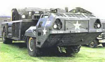 КАТЕРПИЛЛАР (CATERPILLAR) Пеория США 1959- Компания «Катерпиллар», наиболее известный и крупный изготовитель дорожно-строительной и горно-добывающей техники, возникла в 1925 г. в результате объединения фирм «Холт» (Holt) и «Бэст» (Best), выпускавших паровые колесные тракторы. К производству автомобильной техники она приступила в 1951 г., построив первые одноосные тягачи для скреперов. Катерпиллар ХМ520Е1 «Гоуэр», 4х4,1960 г. Катерпиллар М520 «Гоуэр» 4х4,1963. Катерпиллар М553 «Гоуэр», 4х4,1971 г. Катерпиллар ХМ437Е1 «Гоуэр», 4х4,1961 г. Ракетный комплекс «Найк-Геркулес» на шасси «Катерпиллар ХМ554», 4х4,1962 г. Они послужили основой военной программы, для выпуска которой в середине 50-х гг. было образовано отделение оборонной техники. В 1956 г. по заданию военного ведомства США совместно с фирмами «ЛеТурно» (LeTourneau) и «Кларк» (Clark) там началась разработка принципиально нового семейства тяжелых многоцелевых плавающих транспортеров 4х4 с шарнирно-сочлененной рамой, приспособленных к перевозке по воздуху. Присвоенная им аббревиатура GOER расшифровывалась как go any where – «пройдет везде» и ассоциировалась со словом Goer («Гоуэр») -«Ходок». В 1959 г. первый опытный 5-тонный автомобиль ХМ520 построила фирма «Кларк», а компания «Катерпиллар» предложила 8-тонный вариант ХМ520Е1, который после испытаний был принят за основу легкой гаммы проекта «Гоуэр». Он состоял из двух секций, соединенных друг с другом специальным шарниром, предоставлявшим им три степени свободы с углом взаимного отклонения до 60е', возможность передачи крутящего момента на задние ведущие колеса и управления машиной при помощи гидроцилиндров. На передней секции размещались многотопливный 6-цилиндровый двигатель D333 (8,6 л, 213 л.с.) с турбонаддувом и гидромеханическая б-ступенчатая коробка «Пауэршифт» (Powershift) с переключением передач под нагрузкой, открытая кабина с откидным лобовым стеклом и 4,5-тонная лебедка. Задняя служила для перевозки грузов или установки различного оборудования. Все колеса снабжались планетарными редукторами и шинами низкого давления размером 18.00~33, позволявшими обойтись без подвески. В 1961 г. были построены еще два варианта: ХМ520Е2 с мотором «Детройт Дизель» (Detroit Diesel) V8 и ХМ520ЕЗ с механической 5-ступенчатой коробкой. На следующий год появился топливозаправщик ХМ559Е1 с цистерной вместимостью 13,2 тыс. л и 35-дюймовыми шинами, а в 1965 г. – 10-тонная эвакуационная машина ХМ553, предназначенная для ремонта и буксировки танков М60. Уже в 1960 г. фирма получила первый контракт на поставку модели ХМ520Е1, которая серийно выпускалась с 1963 г под индексом М520 В 1971 г началось производство второй серии, включавшей грузовики М520 и их вариант М877 с краном для перегрузки контейнеров, ремонтно-эвакуационные машины М553 и цистерны М559, оснащенные дизелем D333C (10,5 л, 192 л.с). Все они имели колесную базу 5968 мм, преодолевали подъемы до ЗГ, на шоссе развивали скорость 48 км/ч и на воде за счет вращения колес – до 13 км/ч. В конце 50-х гг. компания «ЛеТурно» разработала тяжелую 15-тонную гамму машин «Гоуэр» ХМ437/438 с дизель-электрической силовой установкой, механическим приводом передних колес и тяговыми электромоторами, встроенными в задние ступицы. В 1960-61 гг. на «Катерпилларе» изготовили опытные образцы, выполненные по этой схеме, – грузовой вариант ХМ437Е1 и цистерну ХМ438Е2 емкостью 18,5 тыс. л. Как и машины «ЛеТурно», они снабжались 274-сильным двигателем «Де