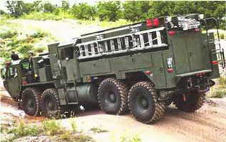 ПИРС (PIERCE) Эпплтон США 1983- Выпуск военных вариантов своих пожарных автомобилей фирма «Пирс» начала в 80-е гг., а присоединение в 1996 г. к военно-промышленной компании «Ошкош» (Oshkosh) позволило пополнить программу специальными армейскими машинами для тушения огня. В 2000 г. был представлен авиатранспортабельный тактический пожарный автомобиль TFFT (Tactical Fire Fighting Truck) на тяжелом шасси «Ошкош М977 НЕМТТ» (8х8) с 450-сильным дизелем и автоматической 4-ступенчатой коробкой передач, приспособленный для работы в экстремальных климатических условиях. В кузове из оцинкованной стали установлены насос с подачей 3800 л/мин, емкости на 3,8 тыс. л воды и 228 л пенообразователя, электрогенератор, специальное оборудование, брандспойты и шланги длиной более 600 м. На крыше кабины и перед лобовым стеклом смонтированы лафетные стволы. Машина массой 28 т развивает скорость 100 км/ч. «Пирс TFFT» на шасси «Ошкош НЕМТТ», 8х8, 2000 г. |