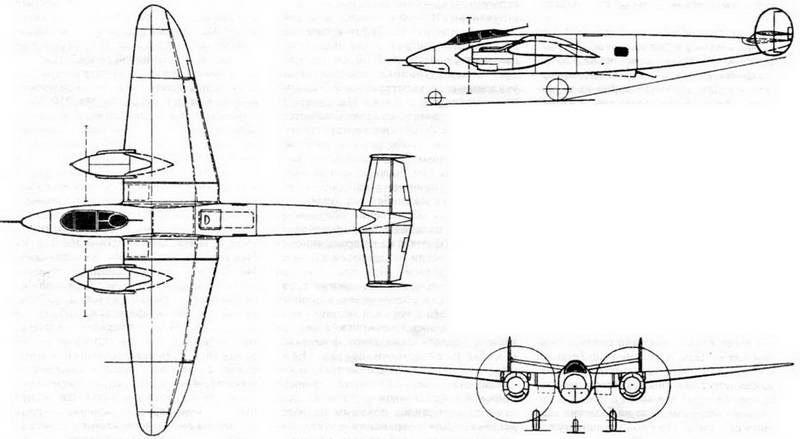 Проект пятипушечного истребителя ППИ (Че-1) ![]() Пятипушечный истребитель. Такого ни до 1939 ни после 1940 г. в практике создания самолетов И.В.Четверикова не было. Всемирно признанный лидер по летающим лодкам Д.П.Григорович, такого себе не позволял. Уж если он делал гидросамолеты в первую мировую войну, то это были классические летающие и водоплавающие "птицы" , лучшие в мире! На сухопутные самолеты Григорович "перешел" лишь под давлением обстоятельств после Октябрьской революции и радикальных изменений во внутренней политике страны. В.Б.Шавров занимался амфибиями и ни одного самолета на сухопутном шасси не сделал. Зачем же И.В.Четверикову, который во время войны единственный из отечественных конструкторов составлял здоровую конкуренцию Г.М.Берие-ву, нужен был истребитель на сухопутном шасси? Ответ прост. Занимаясь глубокими модификациями своего серийного самолета Че-2 (МБР-6) он пытался, чтобы его летающие лодки были как можно ближе к сухопутным машинам по основным полетным характеристикам: скорости, маневренности и т.д. Видимо, для того чтобы иметь наиболее близкое и полное представление об этих запредельных самолетах, он и включился в массовые гонки по созданию лучшего истребителя в предвоенные годы. И чтобы его проект был бы наиболее реальным, он вооружил свой трехместный истребитель только пушками. В носовой части корпуса была установлена пушка Я.Г.Таубина калибра 37 мм. Еще два орудия ШВАК-20 находились по сторонам от главной пушки. Оборонительное вооружение самолета включало две пушки ШВАК. Одна из них стояла в кабине штурмана и еще одна в выдвижной кабине стрелка. Фюзеляж имел круглое, приплюснутое по бортам сечение и очень чистые формы. Остальные крупные агрегаты конструктор использовал со своего гидросамолета БМР-6А. Консоли крыла были взяты без изменений и крепились к фюзеляжу по среднепланной схеме на прямом центроплане, выполненном без традиционных изломов типа "чайки". По размаху оно осталось прежним с теми же элеронами и щитками-закрылками. Хвостовое оперение вместе с двумя килями также осталось без изменений. Мотогондолы, расположенные прежде над крылом, во избежание попаданий винтов в воду, были для нового самолета приопущены вниз до совпадения их верхних контуров с верхней поверхностью крыла. Шасси было сделано трехколесным с носовым колесом. Кабина летчика имела прекрасный обзор и в полете закрывались крышкой, откидывающейся вправо. Штурман занимал свое место через свой открытый фонарь и усаживался спиной к пилоту. Бортовой стрелок попадал в свою кабину через верхний люк и имел возможность занимать сидячее положение на откидном месте, а при стрельбе назад-вниз он прицеливался и вел огонь из лежачего положения. В аварийной ситуации летчик и штурман могли беспрепятственно покинуть свои рабочие места в любом порядке. Хвостовой стрелок мог покинуть самолет через верхний люк, а также, не меняя лежачего положения он мог соскользнуть по качающейся кабине открыв один замок, который удерживал кабину в рабочем положении. Водяные радиаторы были сделаны выдвижными из центроплана крыла вниз, а маслора-диаторы были размещены в мотогондолах. В целом проект самолета ППИ так и не получил официального обозначения Че-1, так как с началом войны все внимание ОКБ-256, которым руководил И.В.Четвериков, было занято доводкой и ремо