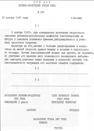 ВО СЛАВУ РОДИНЫ В. Г. НОСОВ, О. Г. НОСОВ К 1OO-ЛЕТИЮ СО ДНЯ РОЖДЕНИЯ ГЕРОЯ СОВЕТСКОГО СОЮЗА ГЕНЕРАЛ-ЛЕЙТЕНАНТА АВИАЦИИ А.С БЛАГОВЕЩЕНСКОГО Генерал-лейтенант Алексей Сергеевич Благовещенский был боевым героем Отечество из первой сотни Героев Советского Союза. Среди громких имен в авиации его имя по долгу службы не афишировалось. Он был скромен и на просьбы рассказать подробно о пройденном пути в авиации говорил: я О б этом напишут другие». Алексей Сергеевич Благовещенский родился 18 октября 1909 года в семье железнодорожного машиниста из Брест-Литовска. Впервые Алеша увидел самолет в пятилетнем возрасте: отец повез его на окраину города, где стояло крылатое чудовище. Неожиданно оно затрещало, и пыль с песком ударила ребенку в глаза, а через минуту, встряхнув головой, он увидел только маленькую точку в небе. Это поразило его до глубины души. Второй раз он был потрясен захватывающими рассказами о полетах военных летчиков на авиационном празднике в Курске, где Алексей учился в промышленно-экономическом техникуме. После этого решил окончательно: «Буду только летчиком!» Путевку в армию тогда давала комсомольская ячейка, и по окончании техникума ребята не могли не поддержать своего лидера по учебе, футболу и гимнастике. Но чтобы попасть в военно-теоретическую школу ВВС Ленинграда, ему пришлось пройти конкурс десять к одному при таком строгом отборе, который Алексей Сергеевич помнил всю жизнь, тем более, что взял грех на душу - на два месяца увеличил себе возраст. И вот теперь он уже имел возможность потрогать каждую деталь самолета, изучать органы управления, рулить и выполнять пробежки. Отличника через год направили в Борисоглебскую 2-ю военную школу летчиков - «Орлиный стан», как ее называли впоследствии, вырастившую таких питомцев, как В.П. Чкалов, П.М. Пумпур, Е.С. Птухин первого выпуска и сотоварищей Благовещенского - Н.П. Каманина, В.К. Коккинаки, И.П. Мазурука и многих других. Из полутора лет упорного освоения мастерства полета самым знаменательным для Алексея стал день рождения 18 октября, совпавший с первым самостоятельным вылетом. В ноябре 1929 года после юбилейного 25-го выпуска школы младший летчик Алексей Благовещенский прибыл в 15-ю Брянскую истребительную авиабригаду белорусского военного округа, где четыре года работы в составе звена, эскадрильи и групп более ста самолетов, сделали из него летчика, в совершенстве знавшего истребители, поражавшего всех железной выдержкой в воздухе и точным расчетом при маневре. На соревнованиях округа его звено вызывало восторг командования филигранной точностью дистанций и интервалов, оригинальностью полета на самолетах, связанных между собой одним шнуром, и это при отсутствии тогда радиосвязи. В Бригаду приезжал герой-испытатель Валерий Чкалов с персональным заданием проверить технику его пилотирования. Причиной приезда, по предположению Алексея Сергеевича, могли послужить два случая из его летной практики: первый произошел на Центральном аэродроме в Москве, когда при взлете у него вдруг вспыхнул мотор. В труднейших условиях Алексей спас машину. Второй случай - гибель на глазах начальника ВВС летчика Григорьева, не сумевшего на малой высоте уйти к верхней точке петли. Взлетев вслед за Григорьевым, Алексей стал закручивать каскады на той же высоте. После полета с Чкаловым молодой команди
