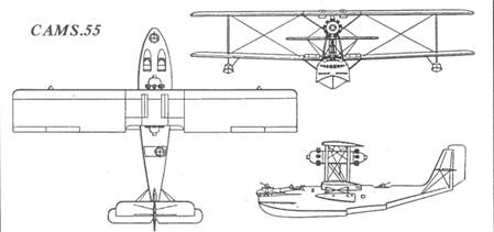 CAMS. 55 Этот морской разведчик-бомбардировщик с экипажем из пяти человек являлся военным вариантом удачной пассажирской летающей лодки CAMS.53. Последнюю построили в 36 экземплярах для эксплуатации на авиалиниях Средиземного моря. Французский флот начал с заказа установочной серии из четырех лодок CAMS.55. На первой и второй машинах устанавливались по два мотора Гном-Рон 9Акх "Юпитер" в 480 л.с., а на третьей и четвертой – двигатели Испано-Сюиза 12Lbr по 600 л.с.. Четвертый самолет из этой партии был изготовлен в Сен- Дени, собран в Сартрувилле и облетан в 1928 г. На следующий год моряки заказали серию из десяти лодок с моторами "Испано" под обозначением CAMS.55.1. Этот контракт впоследствии расширили, включив еще 14 машин с двигателями "Юпитер", названных CAMS.55.2. Модели CAMS.55.1 и CAMS.55.2 были практически идентичны, если не считать моторов. Конструкция выполнялась целиком из дерева. Вооружение состояло из спаренных 7,69-мм пулеметов "Льюис" на турели в носовой части лодки и пары таких же пулеметов в открытой задней установке, которую можно было перекатывать от борта к борту, увеличивая поле обстрела. Первыми авиачастями, получившими новые лодки, являлись эскадрилья ЗЕ1 в Берре, перешедшая на CAMS.55.2 в 1930 г., и эскадрилья 4Е1, сформированная в Карубе в том же году. 4Е1 получила машины типа CAMS.55.1. За ними последовали еще 33 самолета CAMS.55.1 и 15 CAMS.55.2. 77-ю машину собрали с моторами "Юпитер", но она была на 400 кг легче стандартного CAMS.55.2. Выигрыша в весе достигли за счет внедрения лодки и подкрыльевых поплавков из легких сплавов. Этот самолет получил обозначение CAMS.55.6. 78-й самолет был идентичен предыдущему, но оснащался двигателями Гном-Рон 9Kdrsl с наддувом мощностью по 535 л.с. Этот самолет именовался CAMS.55.14. На 79-й лодке и следующих за ней монтировались моторы Гном-Рон 9КЬг без нагнетателей мощностью 530 л.с. На них также вернулись к изготовлению фюзеляжа и поплавков из дерева. Эти машины принимались как модификация CAMS.55.10. Следующие 16 самолетов комплектовались металлическими поплавками (при деревянной лодке). Последние четыре серийные машины, известные как CAMS.55.10 "Колониэ", отличались только более мощными радиостанциями SER-AVL 20 вместо стандартных SIF-404. Производство летающих лодок этого семейства завершили в середине 1935 г., поставив 110-й самолет. Проектировались, но не строились даже в опытных образцах модификации CAMS.55.4 с двумя моторами Лоррэн 12 Fa по 600 л.с., 55.12 с четырьмя Лоррэн 9Na по 300 л.с. и 55.13 с четырьмя Гном- Рон 9Ас "Юпитер" по 420 л.с. Эскадрильи 1Е1, ЗЕ2 и ЗЕЗ летали на CAMS.55 в начале 30-х годов, но к августу 1939 г. самолеты этого типа использовались только для вспомогательных целей. Мобилизация добавила к частям мирного времени новые разведывательные эскадрильи. Па 20 сентября эскадрилья 1S1 в Шербуре имела пять CAMS.55.10, 2S1 в Ланвеоке – три, 3S4 в Берре – два 55.1 и один 55.10, 8S5 в Папеэте (Таити) – два CAMS.55.1. На 10 мая 1940 г., когда немцы перешли в наступление, в строю оставалось еще немало этих устаревших летающих лодок. В эскадрилье 2S1 служили шесть CAMS.55.10, в 4S1 – девять таких же машин, 3S4 располагала тремя. Несмотря на устарелость, самолеты продолжали эксплуатироваться вплоть до расформирования этих авиачастей 1 августа. После капитуляции все лодки типа CAMS.55 пустили на слом за исключением двух машин из эскадрильи 20S (бывшей 8S5), которые с эмблемами "Свободной Франции" летали до 15 января 1941 г. ТАКТИКО-ТЕХНИЧЕСКИЕ ХАР