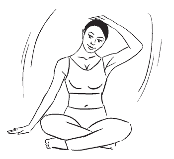 Глава 3Разминка Упражнение 1![]() Сядьте прямо, ноги согнуты в коленях и скрещены перед собой, руки подняты вверх над головой и слегка согнуты в локтевых суставах, ладони внутренней стороной направлены друг к другу. ![]() Опустите руки через стороны вниз до уровня плеч и плавно запрокиньте голову назад до комфортного ощущения. Старайтесь сохранять прямое положение спины. Почувствуйте растяжение мышц верхней части туловища. Задержитесь в этом положении на 10–12 счетов. ![]() Поднимите руки вверх, ладони направлены в стороны. Слегка потянитесь туловищем за руками и задержитесь в конечной точке растяжки на несколько счетов.